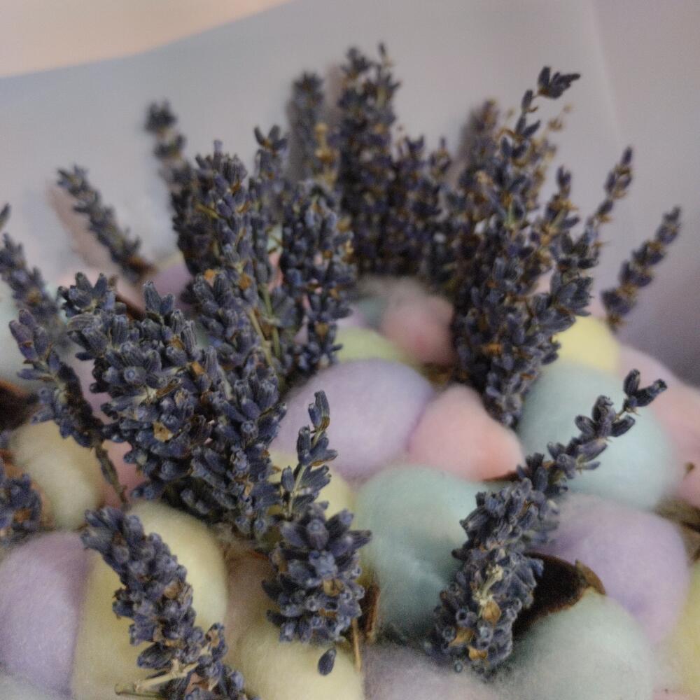 Хлопок - 11 шт.Лаванда - 50 шт.Бумага - 2 шт.Лента - 1 шт.